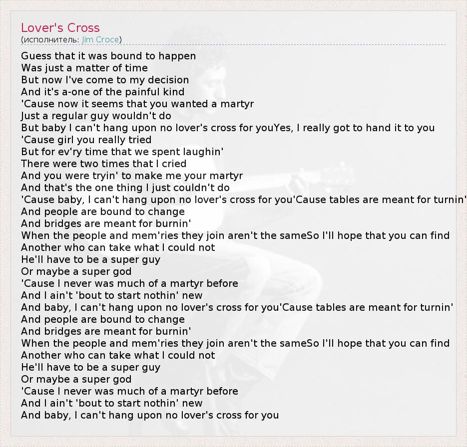 А как ты думаешь, о чем песня "Lover's Cross" ?