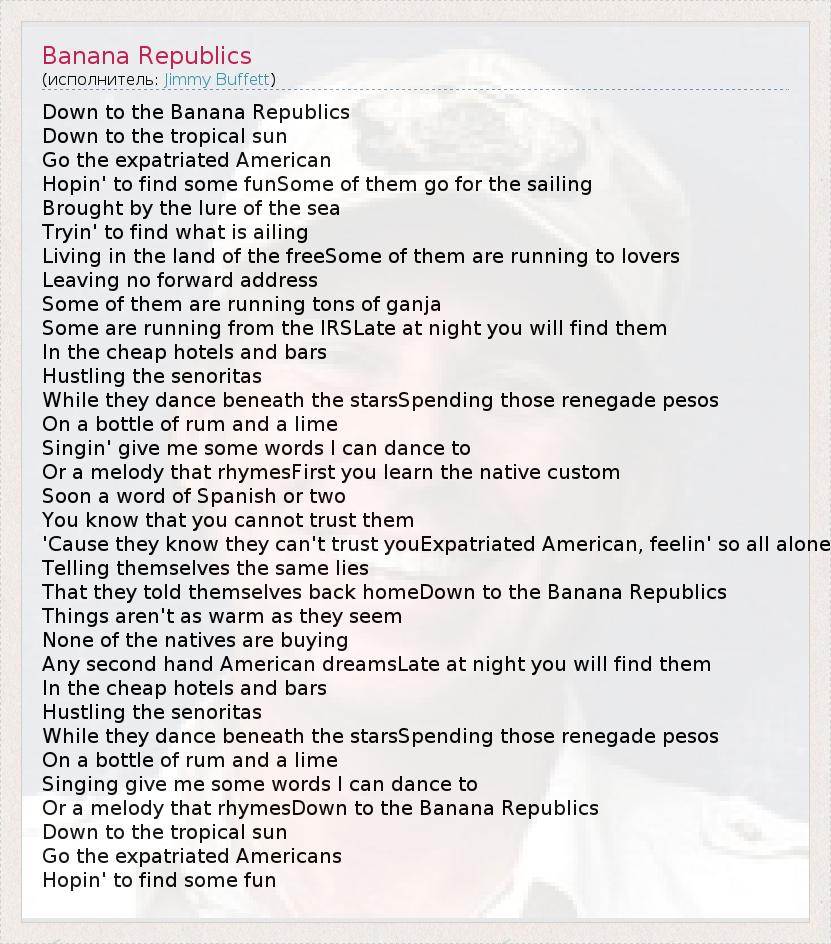 А как ты думаешь, о чем песня "Banana Republics" ?