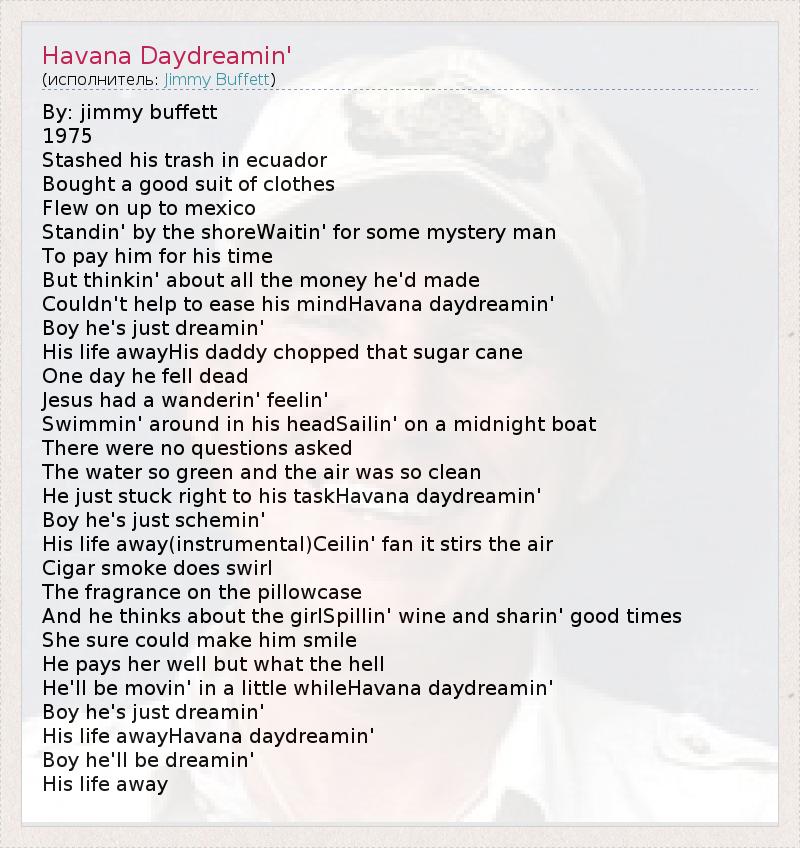 А как ты думаешь, о чем песня "Havana Daydreamin'" ?
