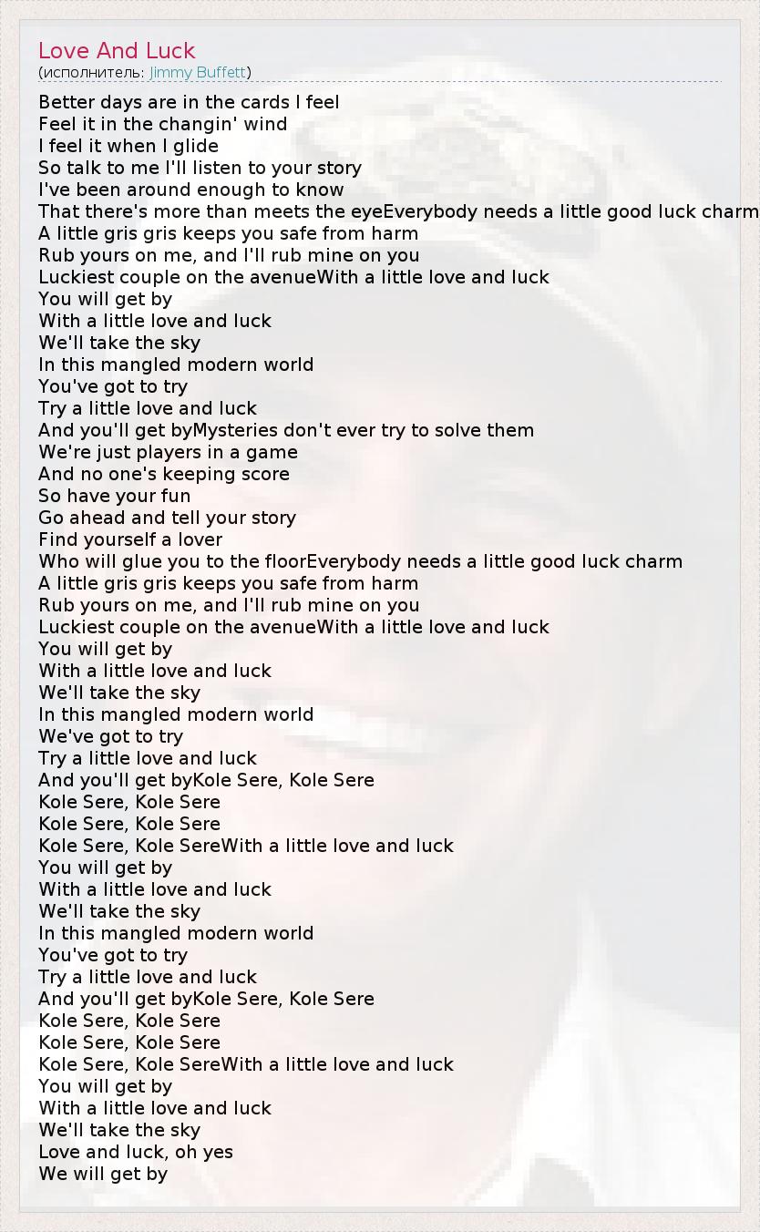 А как ты думаешь, о чем песня "Love And Luck" ?