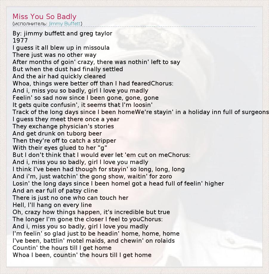 А как ты думаешь, о чем песня "Miss You So Badly" ?