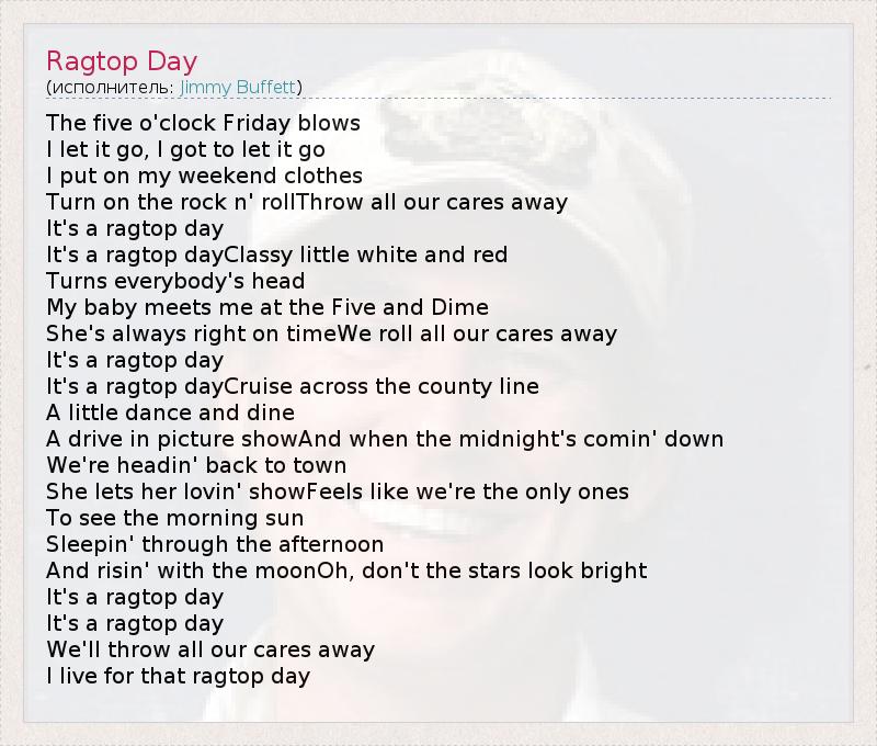 А как ты думаешь, о чем песня "Ragtop Day" ?
