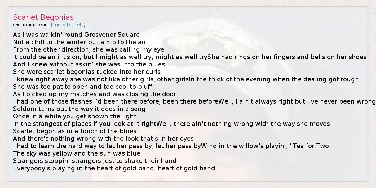 А как ты думаешь, о чем песня "Scarlet Begonias" ?