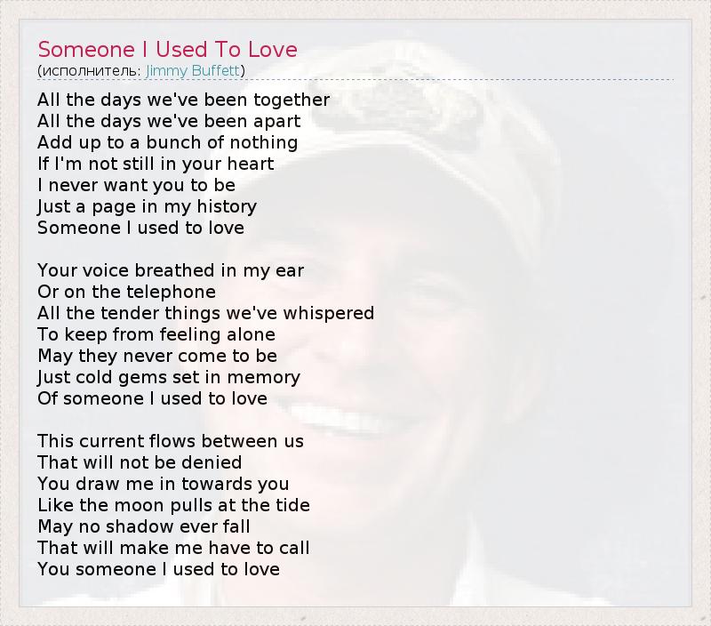 All the days we've been together All the days we've been apart Add up to a bunch of nothing If I'm not still in your heart I never want you to be Just a page in my history Someone I used to love Your voice breathed in my ear Or on the telephone All the tender things we've whispered To keep from feeling alone May they never come to be Just cold gems set in memory Of someone I used to love This current flows between us That will not be denied You draw me in towards you Like the moon pulls at the tide May no shadow ever fall That will make me have to call You someone I used to love