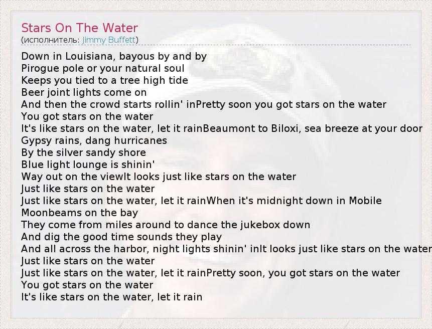 А как ты думаешь, о чем песня "Stars On The Water" ?