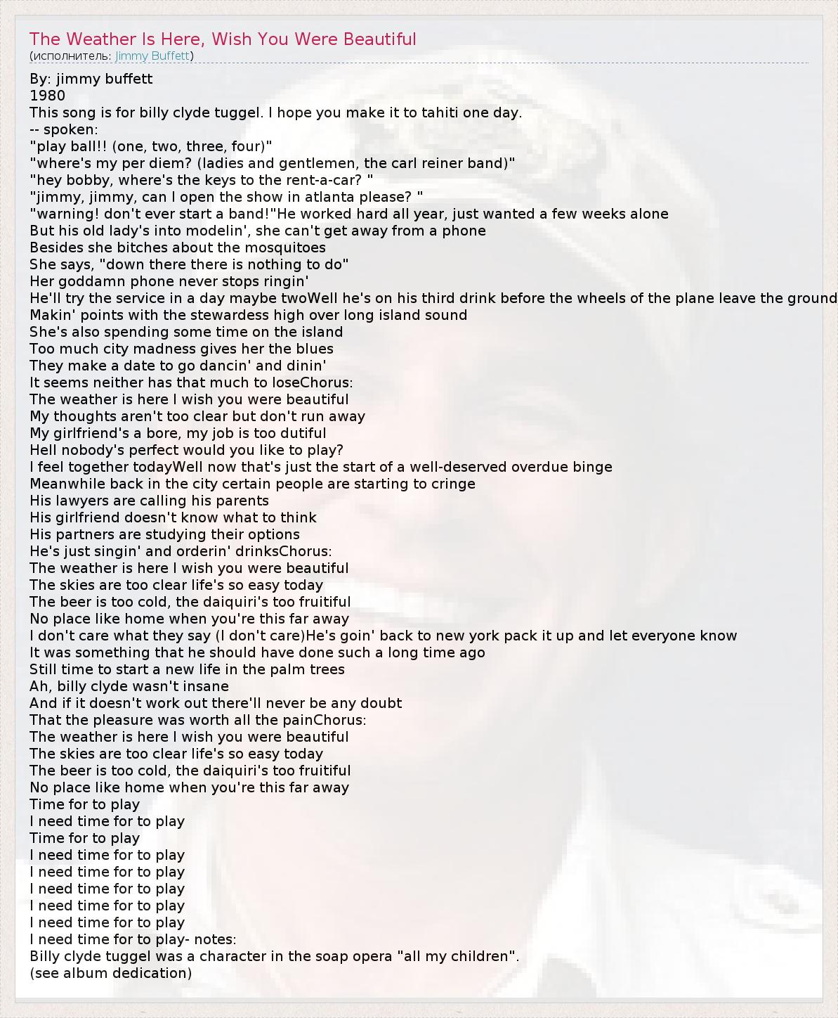 ГлавнаяИсполнителиJimmy BuffettThe Weather Is Here, Wish You Were Beautiful