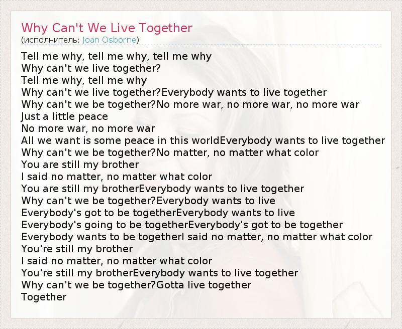 А как ты думаешь, о чем песня "Why Can't We Live Together" ?