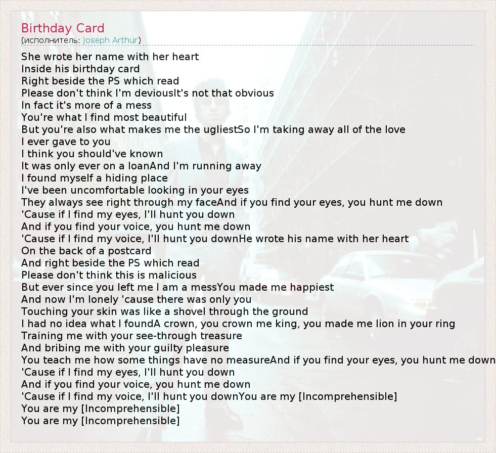 А как ты думаешь, о чем песня "Birthday Card" ?
