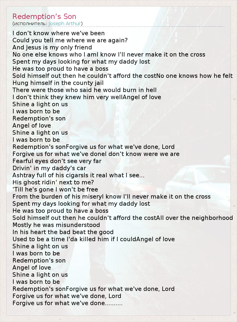 А как ты думаешь, о чем песня "Redemption’s Son" ?