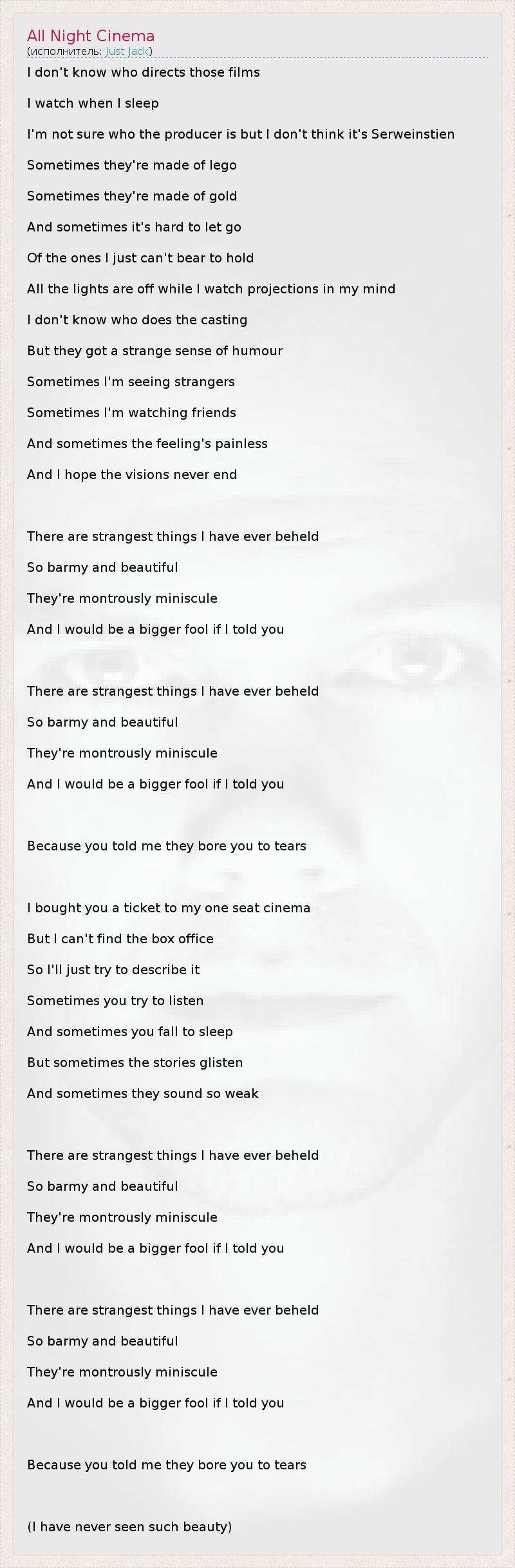 А как ты думаешь, о чем песня "All Night Cinema" ?