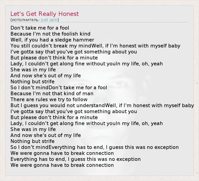 ГлавнаяИсполнителиJust JackLet's Get Really Honest