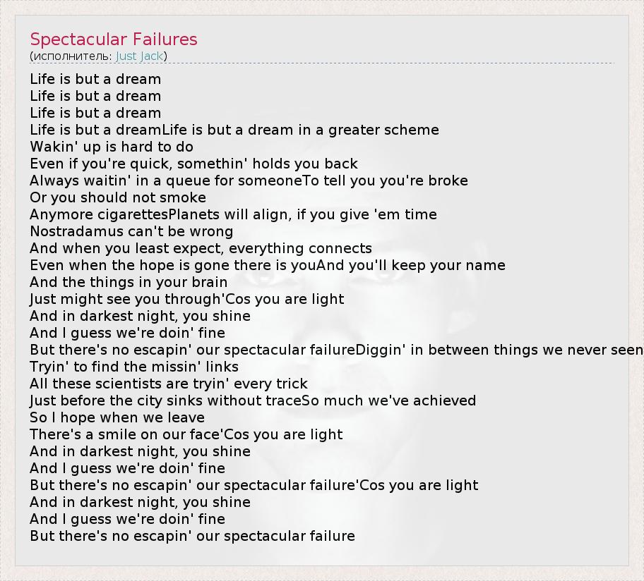 А как ты думаешь, о чем песня "Spectacular Failures" ?