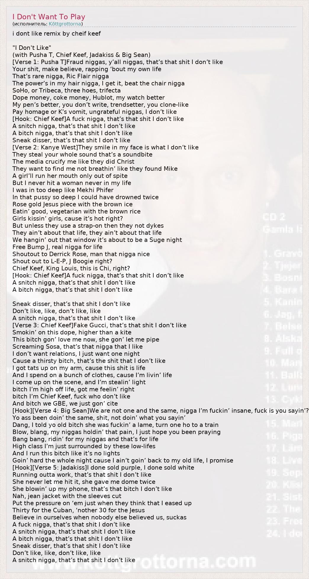 А как ты думаешь, о чем песня "I Don't Want To Play" ?
