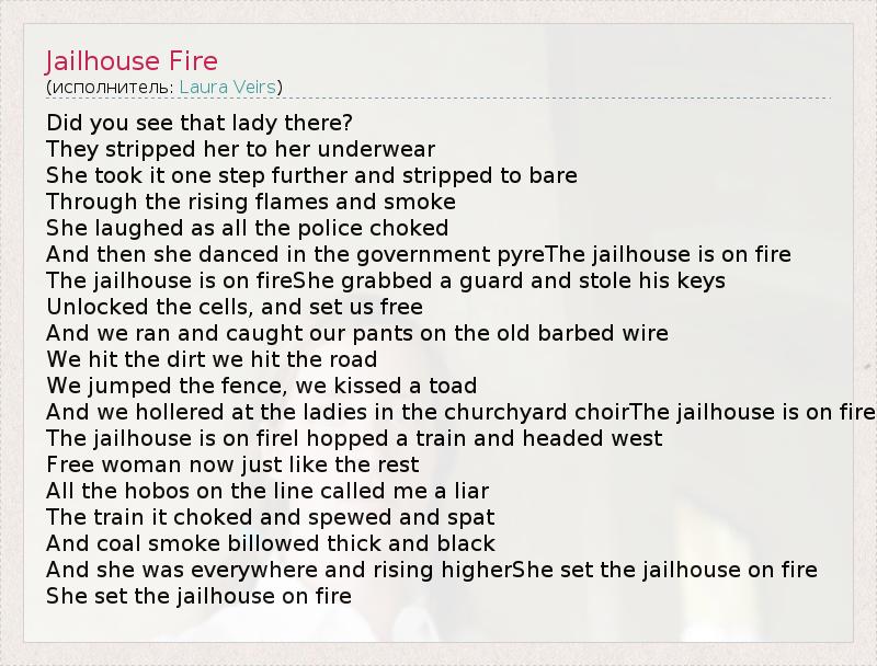 А как ты думаешь, о чем песня "Jailhouse Fire" ?