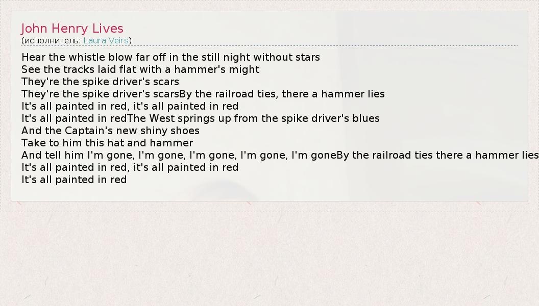 А как ты думаешь, о чем песня "John Henry Lives" ?