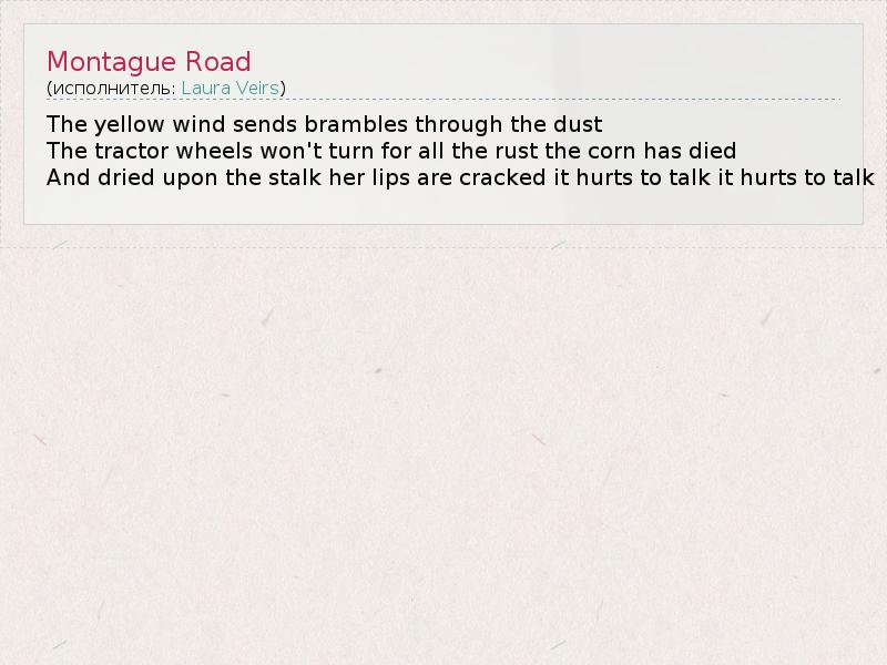 And dried upon the stalk her lips are cracked it hurts to talk it hurts to talk