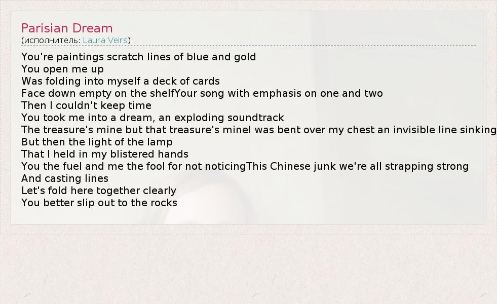 А как ты думаешь, о чем песня "Parisian Dream" ?