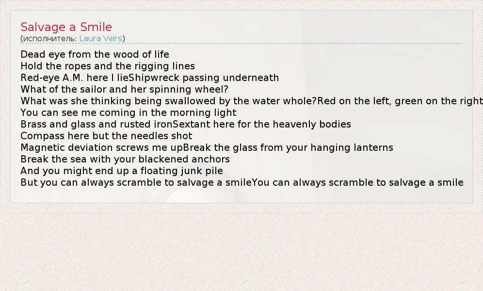 А как ты думаешь, о чем песня "Salvage a Smile" ?