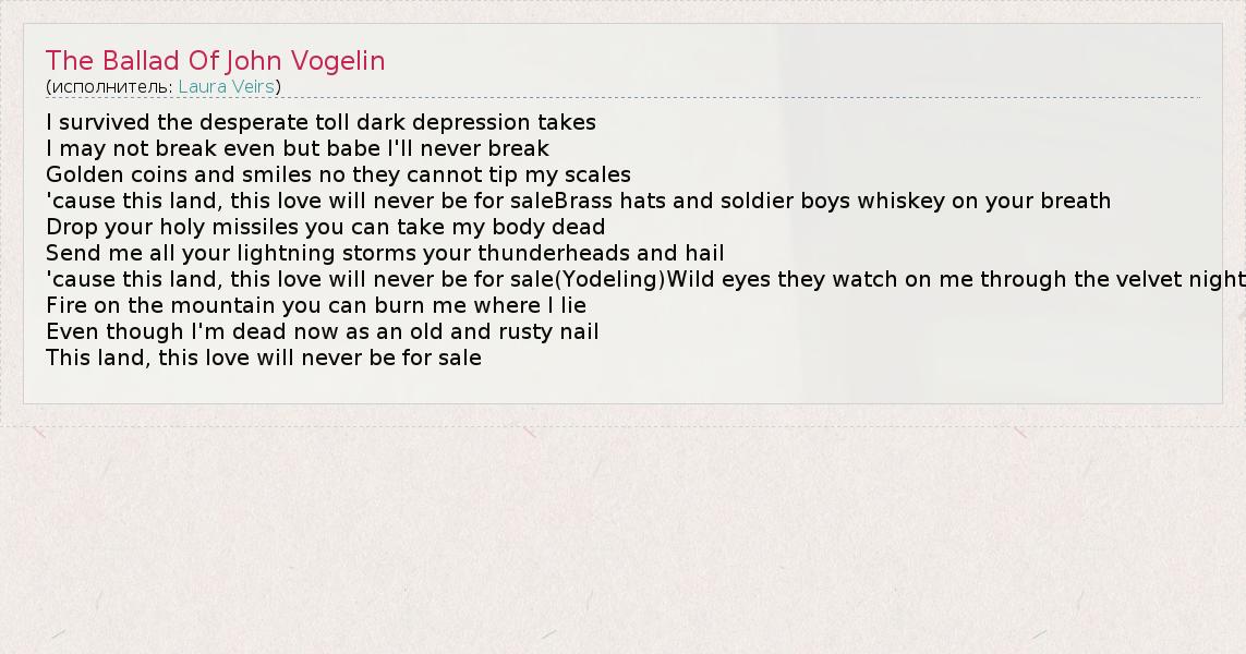 А как ты думаешь, о чем песня "The Ballad Of John Vogelin" ?
