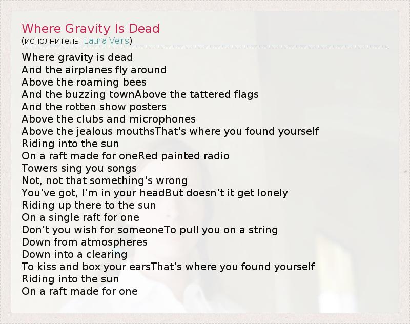 А как ты думаешь, о чем песня "Where Gravity Is Dead" ?