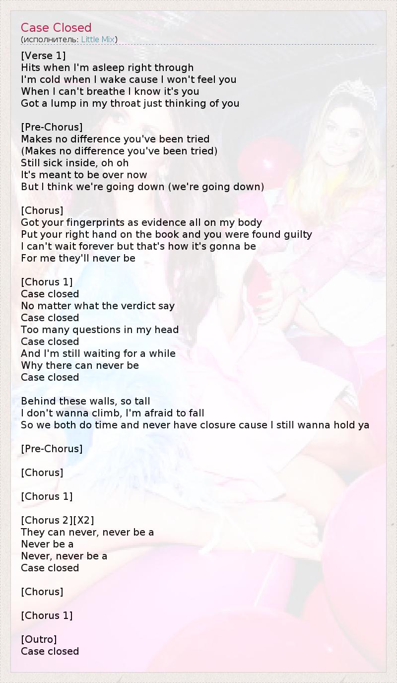 А как ты думаешь, о чем песня "Case Closed" ?