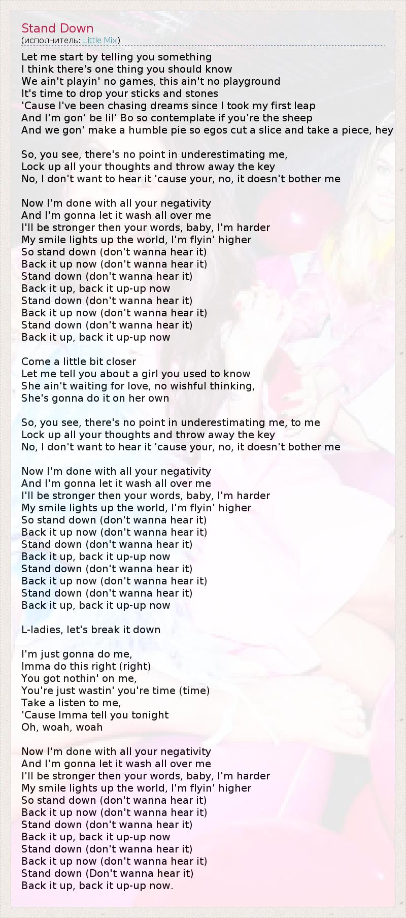 Stand down (don't wanna hear it)