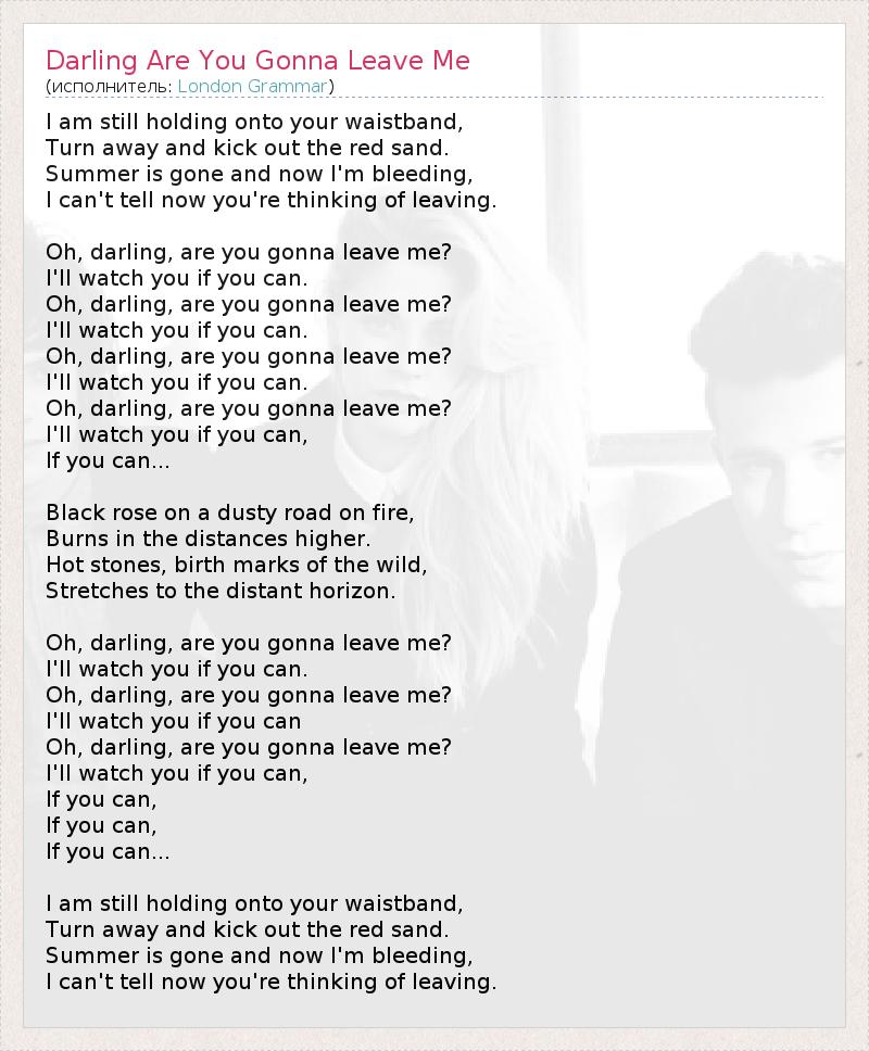 А как ты думаешь, о чем песня "Darling Are You Gonna Leave Me" ?