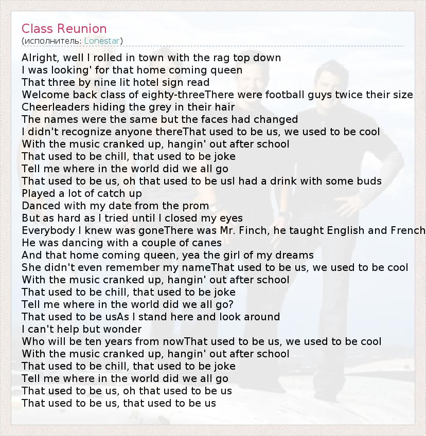 А как ты думаешь, о чем песня "Class Reunion" ?