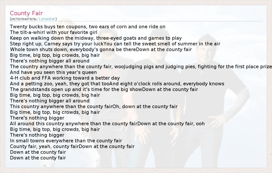 All around this country anywhere than the county fairDown at the county fair, ooh