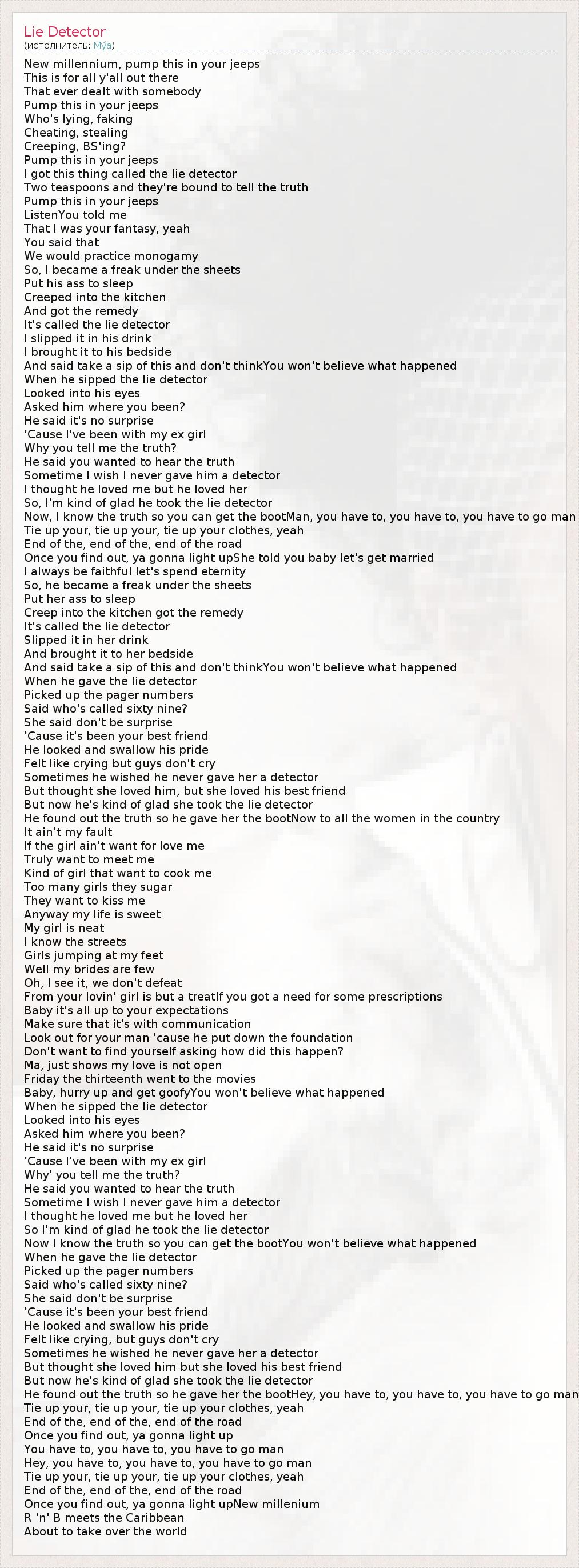 А как ты думаешь, о чем песня "Lie Detector" ?