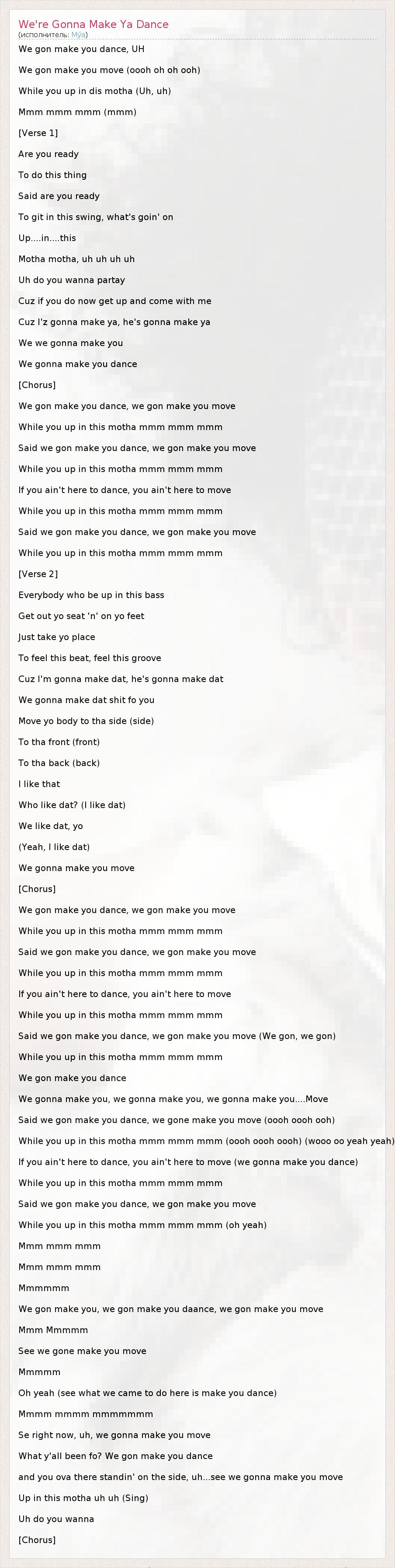 А как ты думаешь, о чем песня "We're Gonna Make Ya Dance" ?