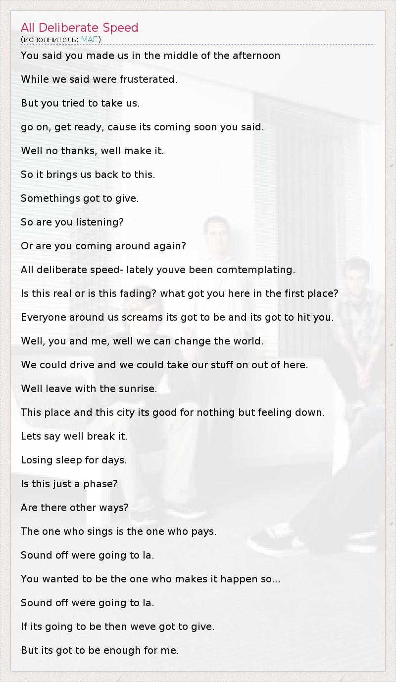 А как ты думаешь, о чем песня "All Deliberate Speed" ?