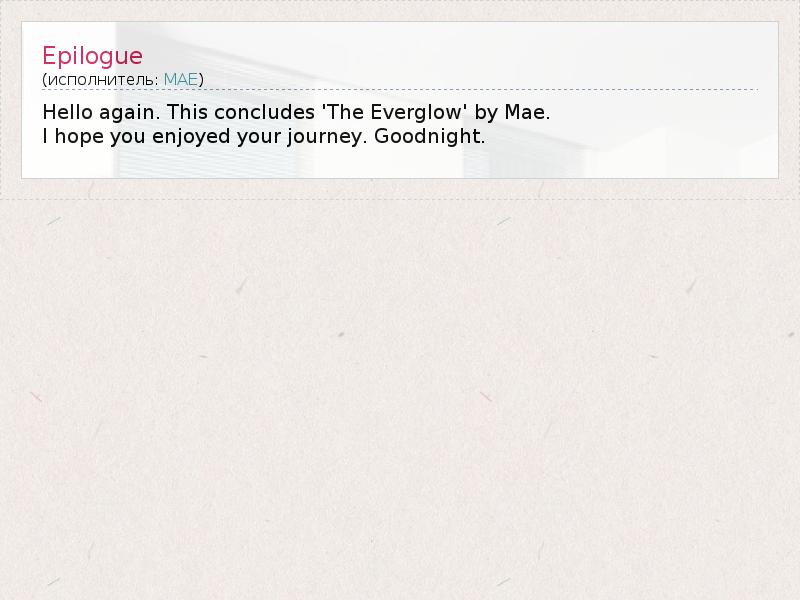 Так и скажи (wwwerger.ru) 2017  Мадам  La Inquietud... см. текст песни )  Cocaine (есть перевод текста)❤  [2007 - El secreto de las tortugas] - 6. La raya  Лучший  Ника никогда, Ника никому  Восточные танцы (single 2016)  1 опенинг (на русском)  Последний Серафим( OP 1).