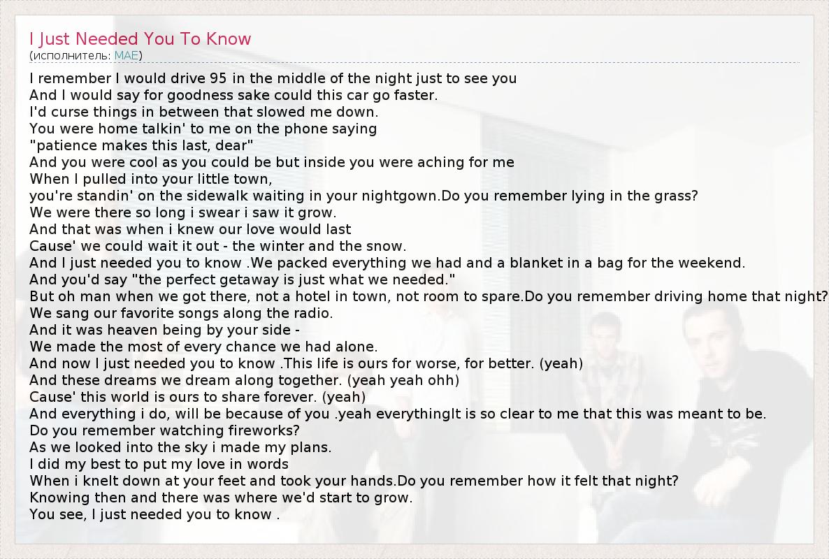 А как ты думаешь, о чем песня "I Just Needed You To Know" ?