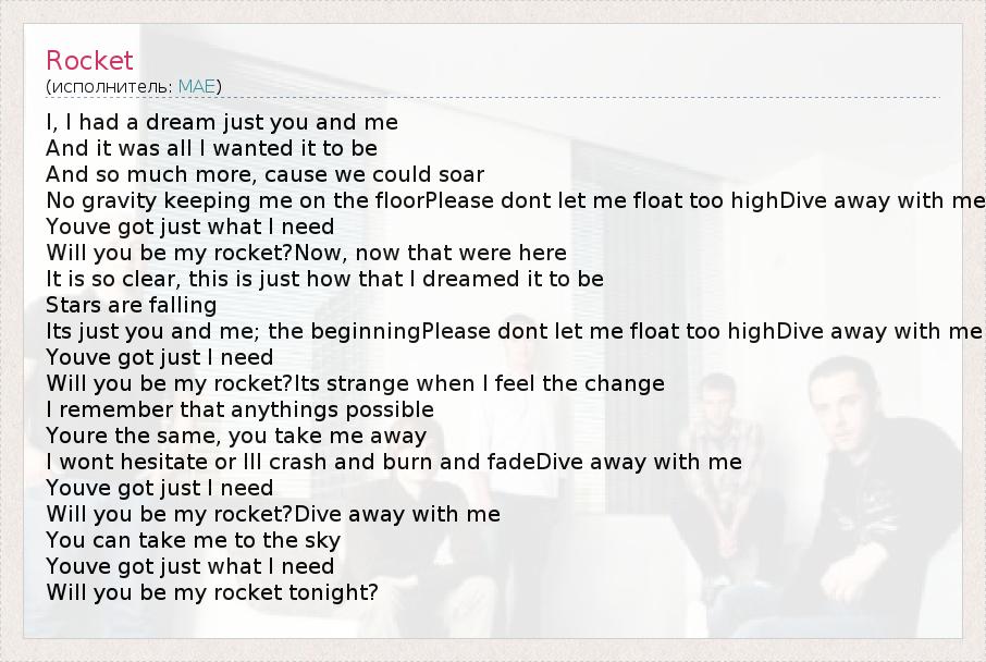 А как ты думаешь, о чем песня "Rocket" ?