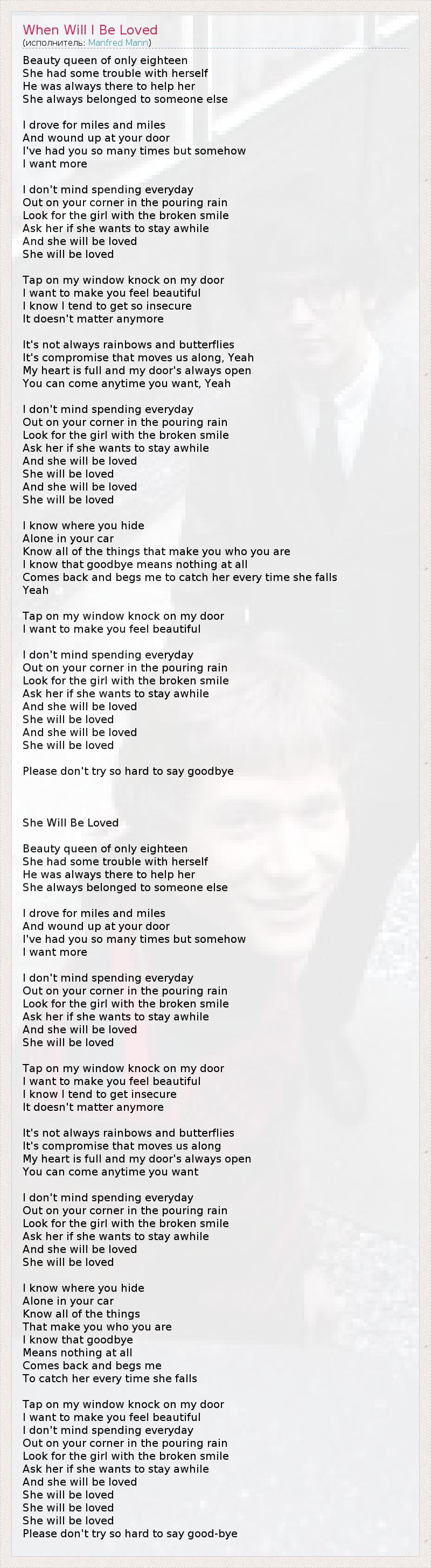 А как ты думаешь, о чем песня "When Will I Be Loved" ?