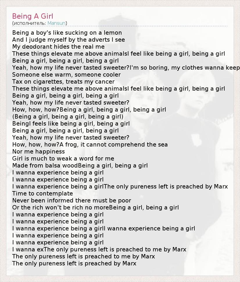 А как ты думаешь, о чем песня "Being A Girl" ?