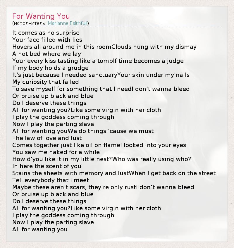 А как ты думаешь, о чем песня "For Wanting You" ?