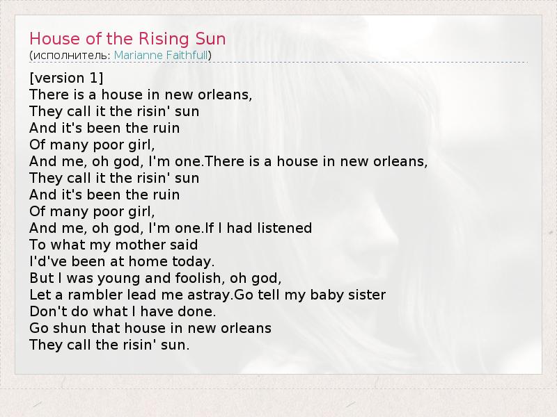 А как ты думаешь, о чем песня "House of the Rising Sun" ?