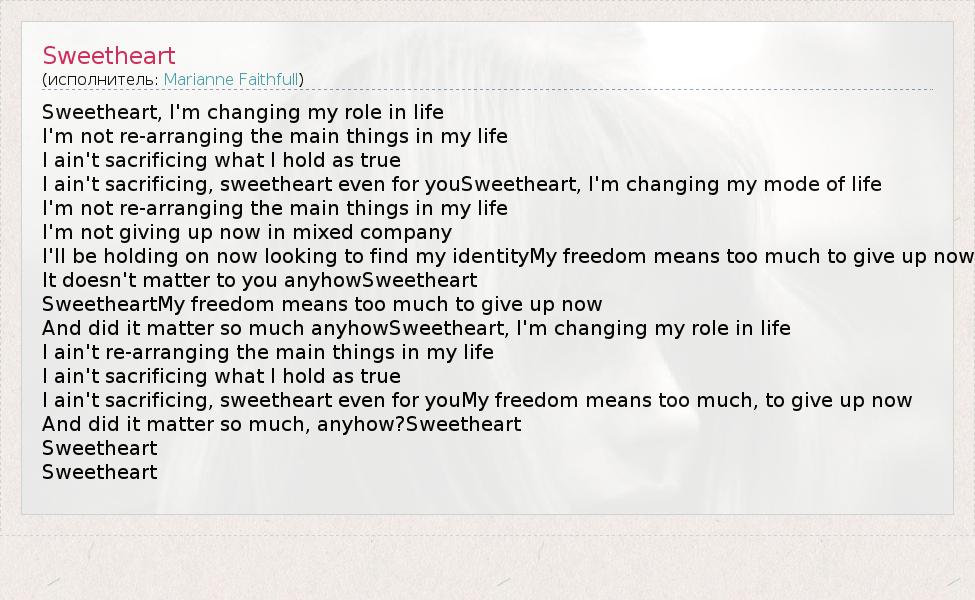 SweetheartMy freedom means too much to give up now
