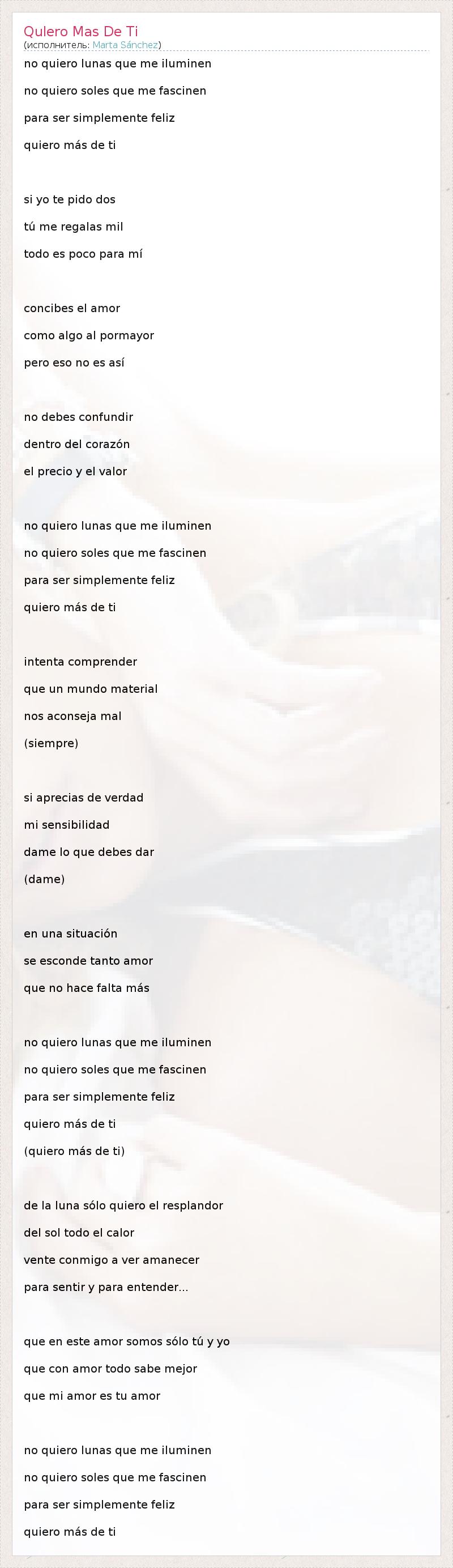 А как ты думаешь, о чем песня "Qulero Mas De Ti" ?