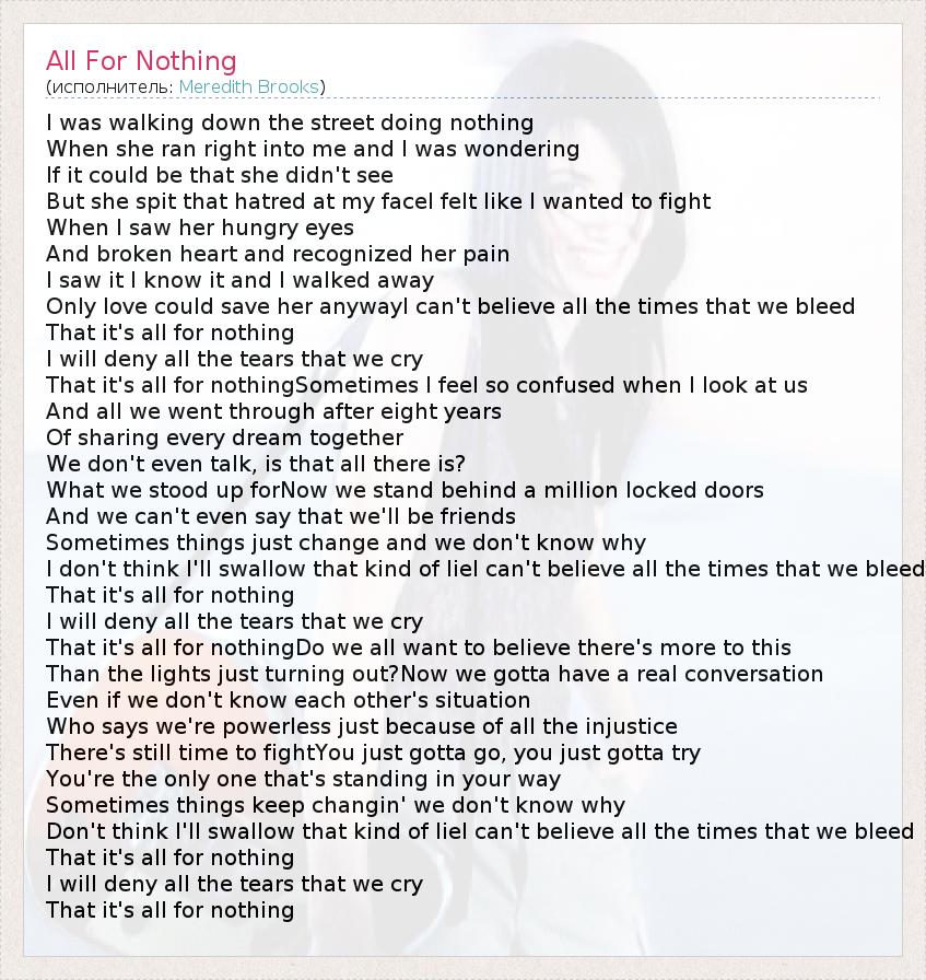 А как ты думаешь, о чем песня "All For Nothing" ?