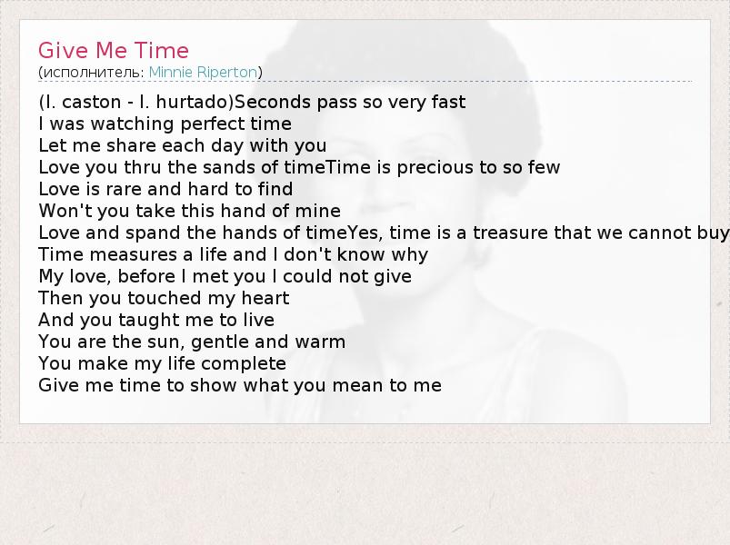 А как ты думаешь, о чем песня "Give Me Time" ?