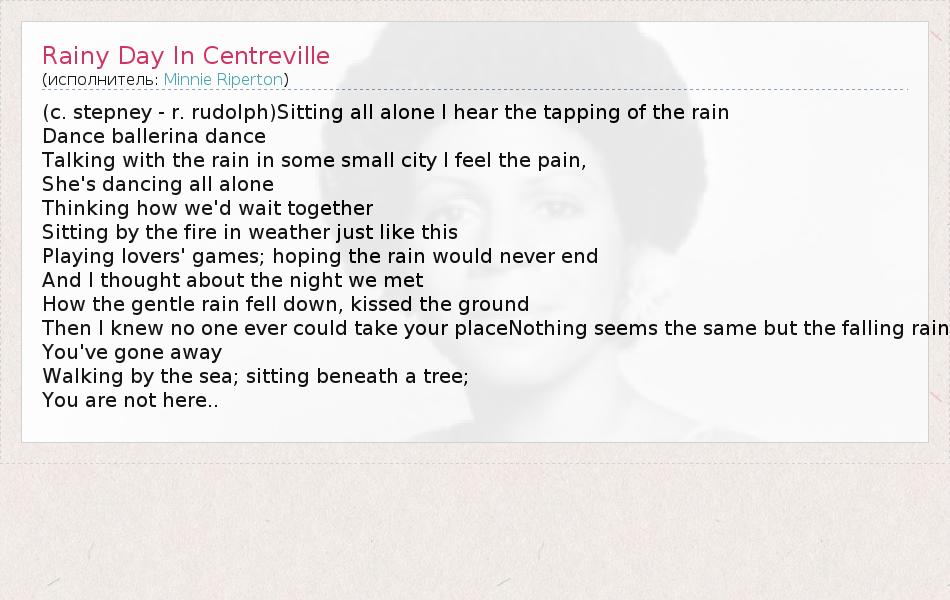 А как ты думаешь, о чем песня "Rainy Day In Centreville" ?