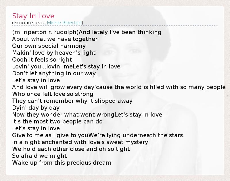 А как ты думаешь, о чем песня "Stay In Love" ?