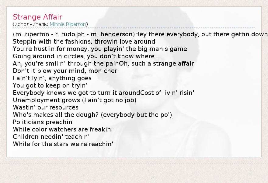 А как ты думаешь, о чем песня "Strange Affair" ?