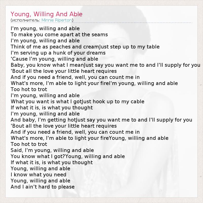 'Cause I'm young, willing and able
