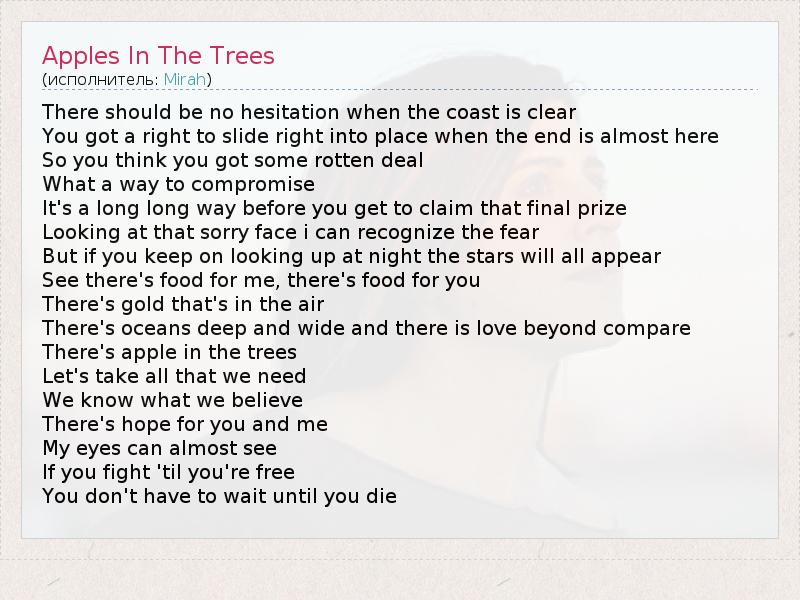 А как ты думаешь, о чем песня "Apples In The Trees" ?
