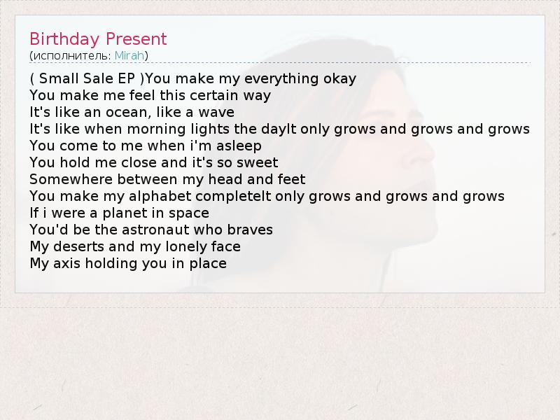 А как ты думаешь, о чем песня "Birthday Present" ?