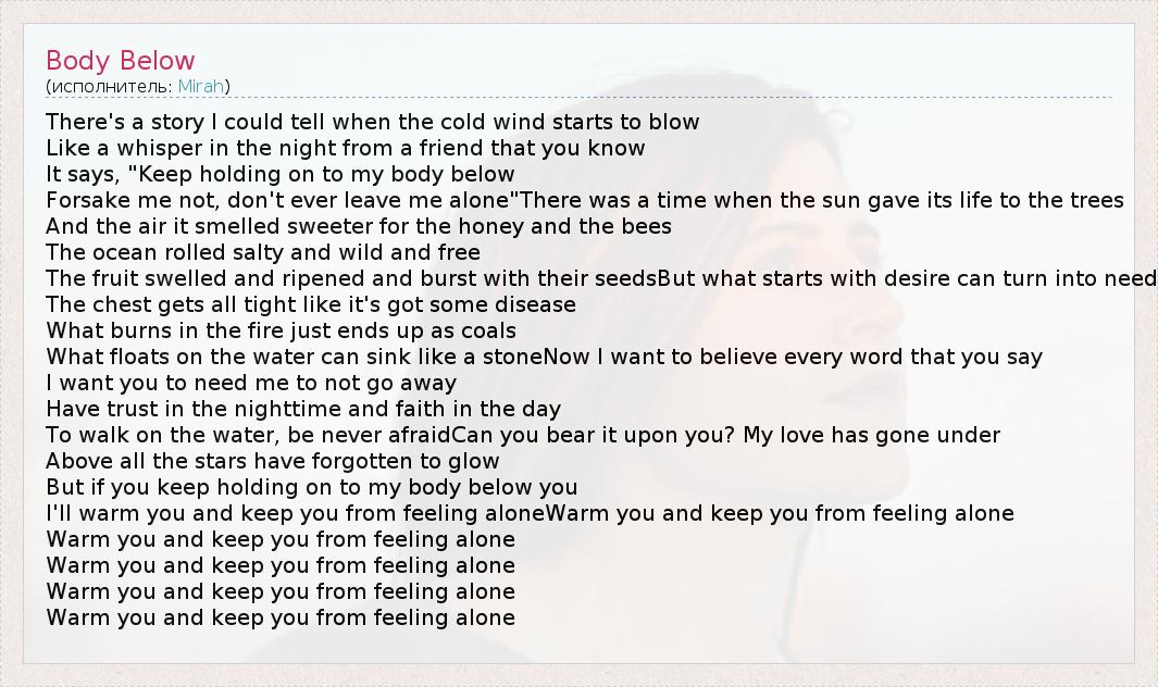 I'll warm you and keep you from feeling aloneWarm you and keep you from feeling alone
